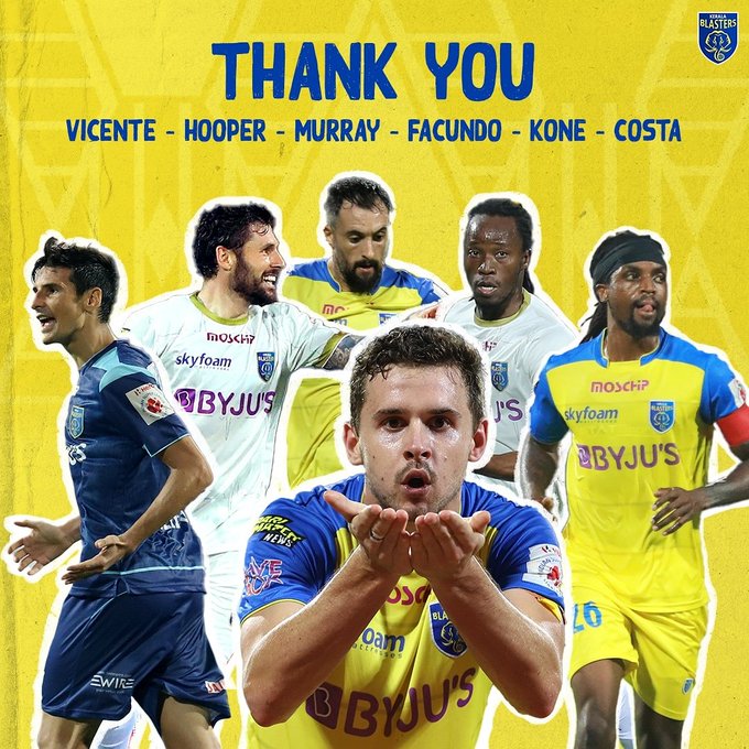 കഴിഞ്ഞ സീസണിൽ ടീമിലുണ്ടായിരുന്ന 6 വിദേശ താരങ്ങളെ ഒറ്റയടിക്ക് ഒഴിവാക്കി കേരള ബ്ലാസ്റ്റേഴ്സ്. കഴിഞ്ഞ സീസണിൽ ഫസ്റ്റ് ഇലവനിലെ സ്ഥിര സാന്നിധ്യമായിരുന്ന താരങ്ങളെയാണ് ക്ലബ് റിലീസ് ചെയ്തത്. ജോർദൻ മറെ, ഗാരി ഹൂപ്പർ, വിസൻ്റെ ഗോമസ്, ഫക്കുണ്ടോ പെരേര, കോസ്റ്റ ന്യാമൊയ്ന്സു, ബക്കാരി കോനെ എന്നിവരെയാണ് ബ്ലാസ്റ്റേഴ്സ് ഒഴിവാക്കിയത്. സ്പാനിഷ് താരം സെർജിയോ സിഡോഞ്ച മാത്രമാണ് ടീമിൽ ബാക്കിയുള്ള വിദേശ താരം. ക്ലബ് തന്നെ തങ്ങളുടെ സമൂഹമാധ്യമ അക്കൗണ്ടുകളിലൂടെ ഇക്കാര്യം വ്യക്തമാക്കി.