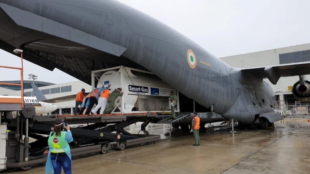 അടിയന്തര സഹായവുമായി യു.എസ് സൈനിക വിമാനം ഇന്ന് രാവിലെയാണ് ന്യൂദല്‍ഹി രാജ്യാന്തര വിമാനത്താവളത്തില്‍ ഇറങ്ങിയത്. യു.എസിന്റെ തന്ത്രപ്രധാനമായ എയര്‍ലിഫ്റ്റ് വിമാനങ്ങളിലൊന്നായ സി-5എം സൂപ്പര്‍ഗാലക്‌സിയിലാണ് വസ്തുക്കള്‍ എത്തിച്ചത്. മെയ് മൂന്നിനുള്ളില്‍ അടുത്ത രണ്ട് വിമാനങ്ങള്‍ കൂടി ദല്‍ഹിയില്‍ എത്തും.