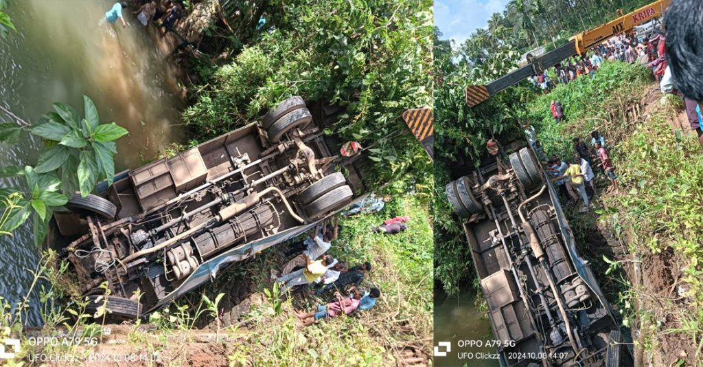 തിരുവമ്പാടി, പുല്ലൂരാംമ്പാറ കാളിയാമ്പുഴയിൽ കെ എസ് ആർ ടി സി ബസ് പുഴയിലേക്ക് മറിഞ്ഞു