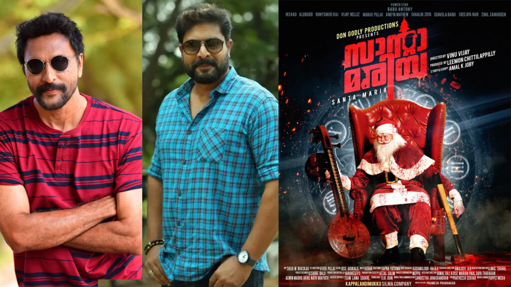 ബാബു ആന്റണിയും ഇർഷാദും പ്രധാന വേഷത്തിൽ എത്തുന്ന പുതിയ ചിത്രം ‘സാന്റാ മരിയ’യുടെ ഫസ്റ്റ് ലുക്ക് ടൈറ്റില് പോസ്റ്റര് പുറത്തെത്തി. ത്രില്ലര് വിഭാഗത്തില് പെടുന്ന ചിത്രത്തിന്റെ സംവിധാനം നവാഗതനായ വിനു വിജയ് ആണ്. സംവിധായകനും തിരക്കഥാകൃത്തുമായ അമല് കെ ജോബിയുടേതാണ് രചന. ഒരു കയ്യിൽ വീണയും മറുകയ്യിൽ ചോര വാർന്ന ചുറ്റികയുമായി ഒരു സോഫയിൽ ഇരിക്കുന്ന സാന്റാക്ലോസ് ആണ് പോസ്റ്ററില്.
