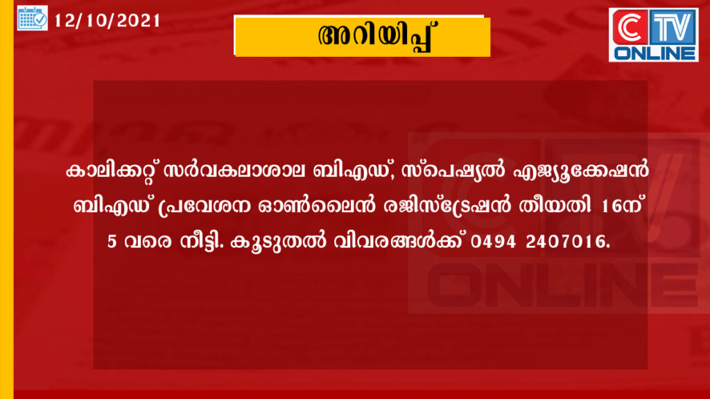 ഓൺലൈൻ രജിസ്ട്രേഷൻ തീയതി നീട്ടി