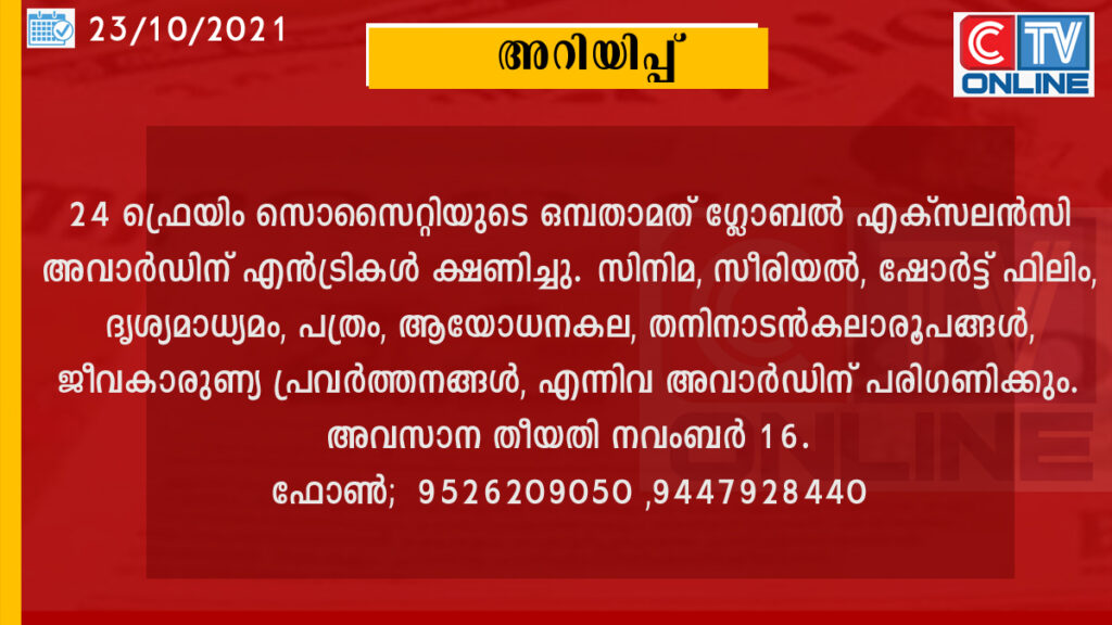 ഗ്ലോബൽ എക്സലൻസി അവാർഡിന് എൻട്രികൾ ക്ഷണിച്ചു