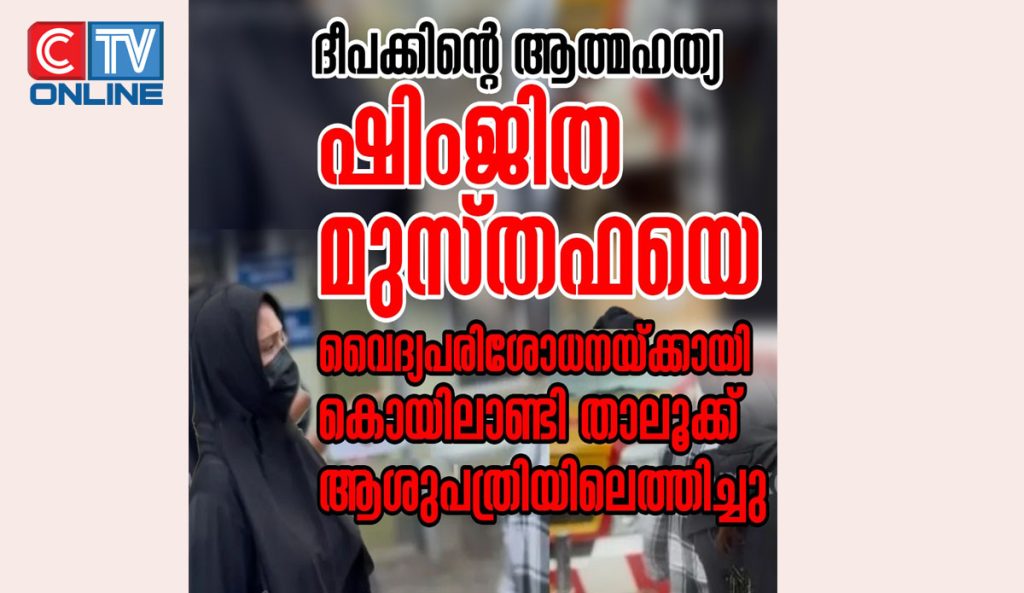 കോഴിക്കോട്ടെ ദീപക് ആത്മഹത്യ : ഷിംജിതയെ കൊയിലാണ്ടി താലൂക്ക് ആശുപത്രിയില്‍ വൈദ്യപരിശോധനയ്ക്കായി എത്തിച്ചത് സ്വകാര്യ കാറില്‍:പുറത്തിറങ്ങിയത് പര്‍ദ്ദയും മുഖത്ത് മാസ്‌കും ധരിച്ച്