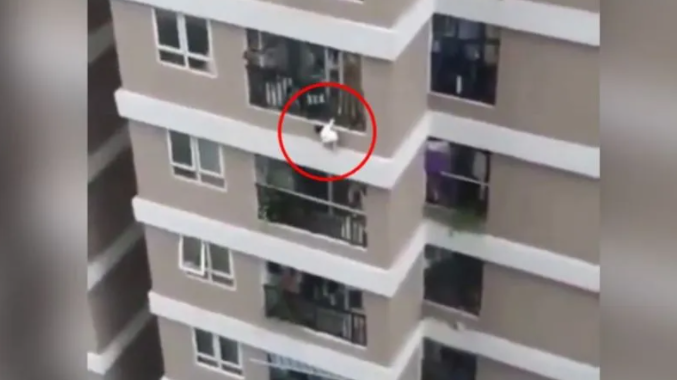 വിയറ്റ്നാമിലാണ് സംഭംവം. ഒരു ഫ്ളാറ്റിന് മുന്നിലെ റോഡിൽ ഡെലിവറി വാഹനത്തിൽ ഇരിക്കുകയായിരുന്നു 31കാരനായ ങ്ക്യുയെൻ ങ്കോഗ് മാൻ. പെട്ടന്നാണ് ഒരു സ്ത്രീയുടെ ശബ്ദം ഇയാൾ കേട്ടത്. വാഹനത്തിന്റെ വിന്റോയിലൂടെ നോക്കിയപ്പോൾ 12ാം നിലയിലെ ബാൽക്കണിയിൽ നിന്ന് താഴേക്ക് തൂങ്ങി നിൽക്കുകയാണ് 2 വയസ്സുള്ള കുഞ്ഞ്.