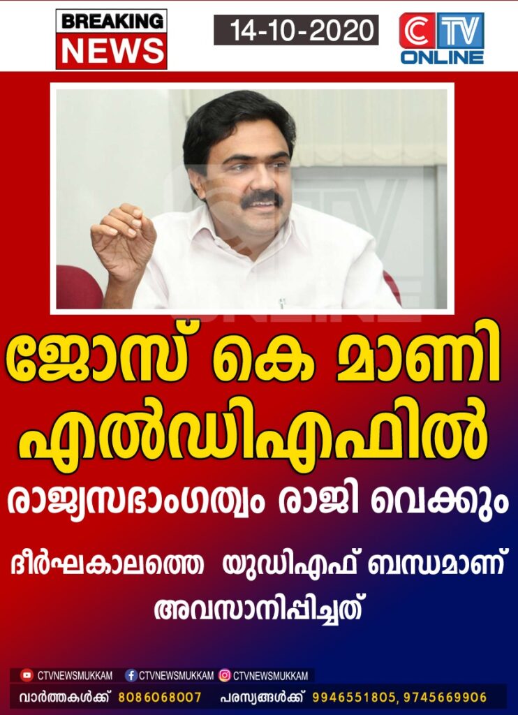 ജോസ് കെ മാണിയുടെ പ്രഖ്യാപനം- ‘ഒക്ടോബർ 9ന് പാർട്ടിയുടെ സ്റ്റിയറിംഗ് കമ്മിറ്റി വിളിച്ചുകൂട്ടിയിരുന്നു. പാർട്ടിയുടെ രാഷ്ട്രീയ നിലപാടിനെ കുറിച്ച് ചർച്ച ചെയ്തിരുന്നു. ജൂൺ 29നാണ് യുഡിഎഫിൽ നിന്ന് കേരളാ കോൺഗ്രസ് എമ്മിനെ പുറത്താക്കിയത്. അന്ന് മുതൽ ഇന്ന് വരെ കേരളാ കോൺഗ്രസ് സ്വതന്ത്ര നിലപാടാണ് എടുത്തത്. കെഎം മാണി സാറാണ് യുഡിഎഫിനെ കെട്ടിപടുത്തത്. ആ പ്രസ്താനത്ത് നിന്ന് കേരളാ കോൺ്രസ് ഇനി അതിൽ തുടരാൻ അർഹതയില്ലെന്നാണ് യുഡിഎഫ് കൺവീനർ സ്റ്റേറ്റ്മെന്റ് എഴുതി വായിച്ചത്. യുഡിഎഫിന്റെ ഉയർച്ചയിലും താഴ്ച്ചയിലും ഒപ്പം നിന്ന മാണി സാറിന്റെ രാഷ്ട്രീയത്തെയും ജനവിഭാഗത്തെയുമാണ് അവർ അപമാനിച്ചത്. കോൺഗ്രസിലെ ചില കേന്ദ്രങ്ങളിൽ നിന്ന് കടുത്ത അനീതിയാണ് കേരളാ കോൺഗ്രസ് പാർട്ടി നേരിടേണ്ടി വന്നത്.