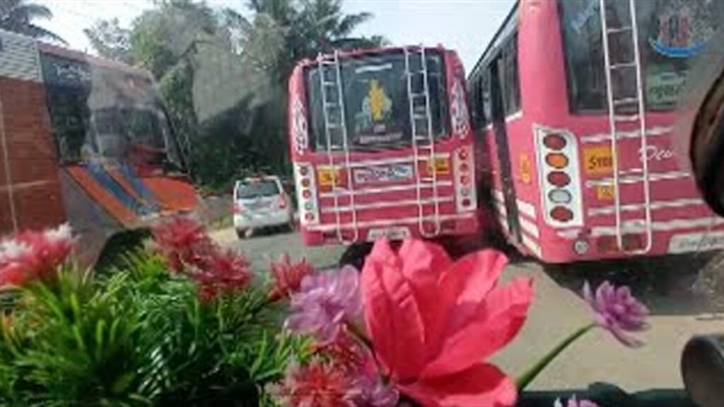 റോങ് സൈഡിൽ ഒരു ബസ്, മുന്നിൽ രണ്ട്; കണ്ണൂരിൽ ആംബുലൻസിനു വഴിനൽകാതെ സ്വകാര്യ ബസുകളുടെ മത്സരയോട്ടം