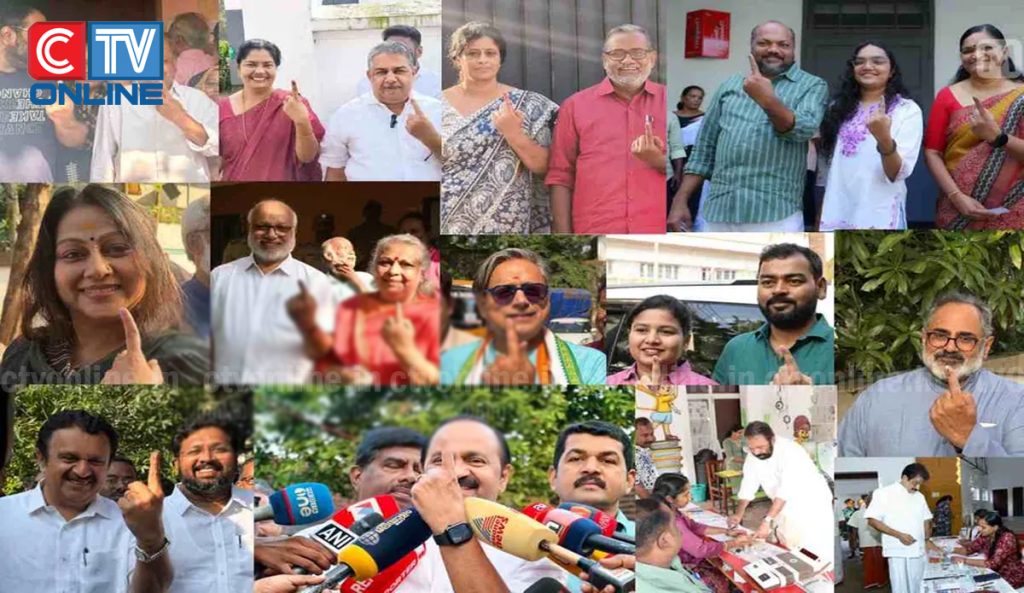 കേന്ദ്ര മന്ത്രി സുരേഷ് ഗോപിയും കുടുംബവും രാവിലെ ആറരയ്ക്ക് തന്നെ വോട്ട് ചെയ്യാനായി ബൂത്തിലെത്തിയിരുന്നു. ശാസ്തമംഗലം സര്ക്കാര് സ്കൂളില് വോട്ടെടുപ്പ് തുടങ്ങിയ ഏഴ് മണിക്ക് ആദ്യ വോട്ടര്മാരിലൊരാളായി സുരേഷ് ഗോപി വോട്ട് ചെയ്തു. പ്രതിപക്ഷ നേതാവ് വി.ഡി.സതീശനും രാവിലെ ഏഴിന് വോട്ട് രേഖപ്പെടുത്തി. സംസ്ഥാന തിരഞ്ഞെടുപ്പ് കമ്മിഷണര് എ.ഷാജഹാന് പട്ടം സെന്റ്മേരീസ് സ്കൂളില് വോട്ട് ചെയ്തു. മന്ത്രി വി.ശിവന്കുട്ടി തിരുവനന്തപുരം ഫോര്ട്ട് വാര്ഡിലെ ബൂത്ത് ഒന്നിലെത്തി വോട്ട് ചെയ്തു.