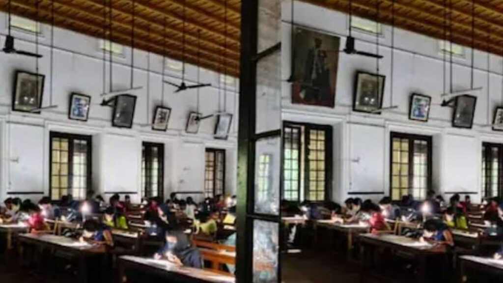 ഹാളില് മൊബൈല് ഫോണ് അടക്കമുള്ള ഇലക്രോണിക് ഉപകരണങ്ങള് കൊണ്ടുവരരുതെന്ന കര്ശന നിര്ദേശം നിലനില്ക്കെയാണ് സംഭവം. കോളജിലെ ഇംഗ്ലീഷ് മെയിന് ഹാളില് ഫ്ലാഷ് ലൈറ്റിന്റെ വെളിച്ചത്തില് വിദ്യാര്ത്ഥികള് പരീക്ഷയെഴുതുന്ന ചിത്രങ്ങള് പുറത്തെത്തിയതോടെയാണ് സംഭവം ചര്ച്ചയായത്. വിദ്യാര്ത്ഥികള് തന്നെയാണ് ചിത്രങ്ങള് സമൂഹമാധ്യമങ്ങളില് പങ്കുവച്ചത്.