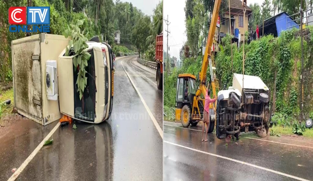 നോർത്ത് കാരശ്ശേരിയിൽ മിനി പിക്കപ്പ് ലോറി നിയന്ത്രണം വിട്ട് മറിഞ്ഞ് അപകടം