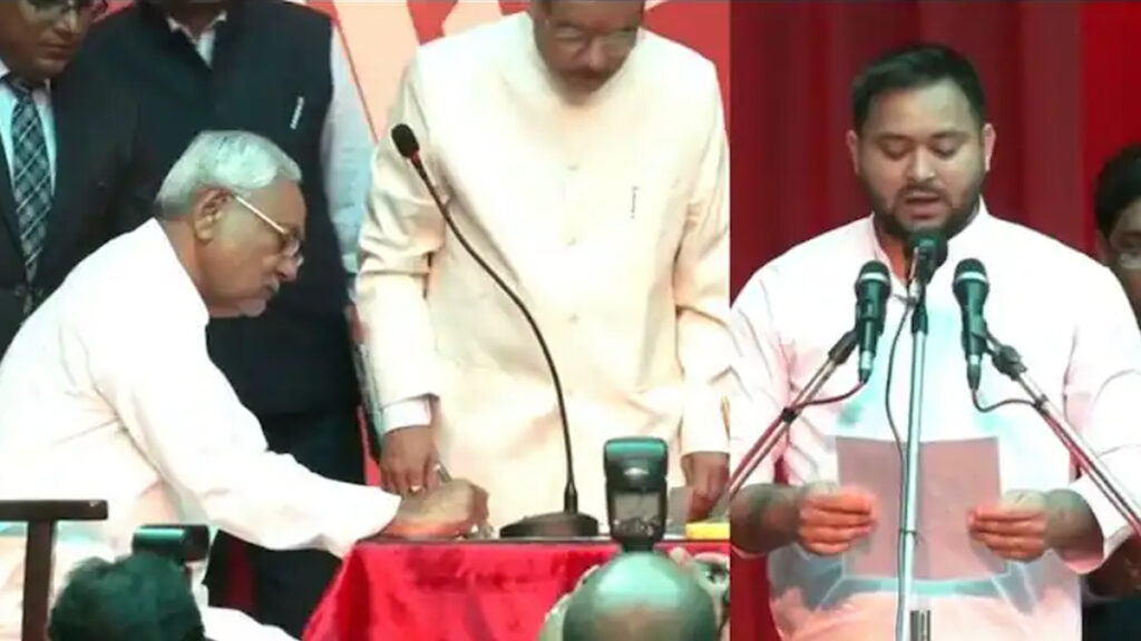 ഗവര്ണര് ഫഗു ചൗഹാനാണ് ഇരുവര്ക്കും സത്യവാചകം ചൊല്ലിക്കൊടുത്തത്. കോണ്ഗ്രസും ഇടതുപാര്ട്ടികളും ചേര്ന്നതാണ് മഹാസഖ്യം. രാജ്ഭവനിലാണ് ചടങ്ങുകള് നടന്നത്. സ്പീക്കര് പദവിയും ആര്ജെഡിക്ക് നല്കും. തേജസ്വി യാദവ് ആഭ്യന്തര വകുപ്പ് മന്ത്രിയാകുമെന്നും റിപ്പോര്ട്ടുകളുണ്ട്.
