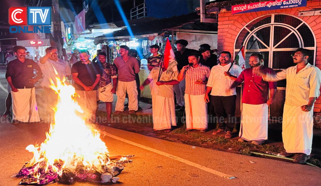 മാവൂർ : മാവൂർ മണ്ഡലം കമ്മിറ്റി യുടെ നേതൃത്വത്തിൽപ്രതിഷേധ പ്രകടനവും കോലം കത്തിക്കലും നടന്നു. ശബരിമലയിൽ നടന്ന സ്വർണക്കൊള്ളയിൽ പ്രതിഷേധിച്ചാണ് യൂത്ത് കോൺഗ്രസ് മാവൂർ മണ്ഡലം കമ്മിറ്റി പരിപാടി സംഘടിപ്പിച്ചത്.
