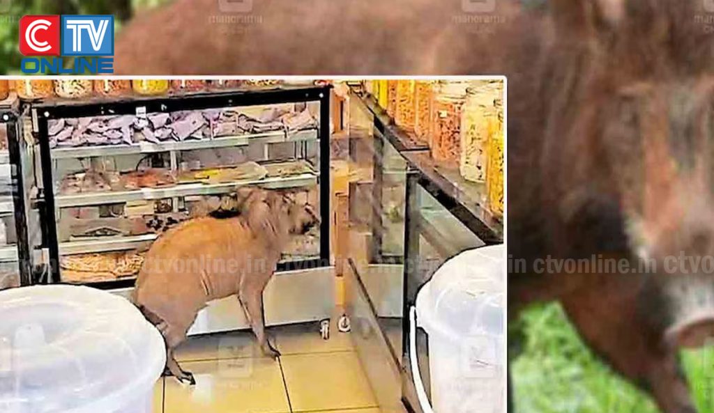 ഉല്ലാസ് കോളനി റോഡ് വഴി വന്ന കാട്ടുപന്നി ദേശീയപാത മുറിച്ച് കടന്ന് എതിർ ഭാഗത്തെ കൈവരിയുടെ ഇടയിലൂടെ നടപ്പാതയിൽ കയറിയാണ് ബേക്കറിക്കുള്ളിൽ കടന്നത്. ഇതിനിടെ മേശയുടെ കാലിനുള്ളിൽ കുടുങ്ങിയങ്കിലും ജീവനക്കാർ മേശ മാറ്റിക്കൊടുത്തതോടെ മുറിക്കുള്ളിൽ നിന്ന് വീണ്ടും കടയുടെ മുൻ ഭാഗത്ത് എത്തി. തുടർന്നു ദേശീയപാത മുറിച്ചുകടന്ന് വന്നവഴി സ്ഥലം വിട്ടു.