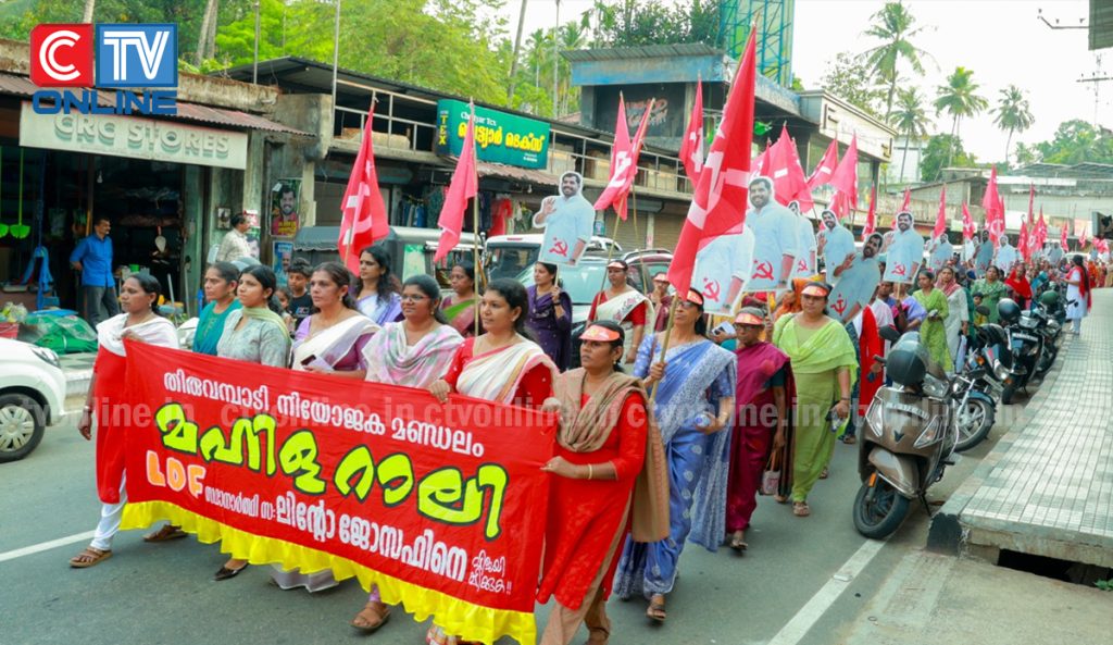 തിരുവമ്പാടി നിയോജക മണ്ഡലം സ്ഥാനാർഥി ലിൻ്റോ ജോസഫിൻ്റെ തിരഞ്ഞെടുപ്പ് പ്രചാരണാർത്ഥം ഇടതുപക്ഷ വനിത സംഘടനകൾ സംയുക്തമായി തിരുവമ്പാടിയിൽ നടത്തിയ മഹിളാ റാലി.