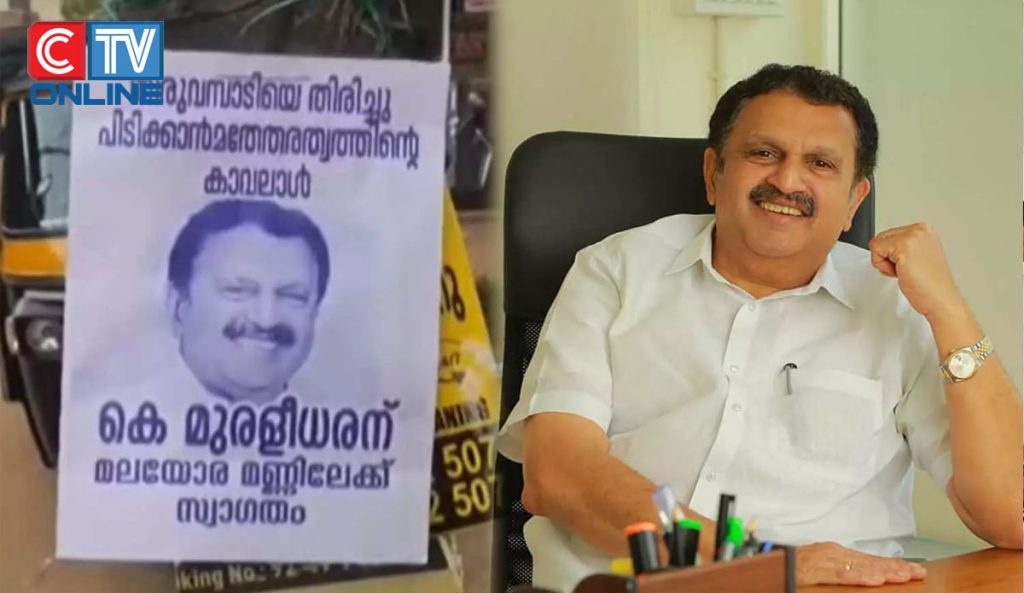 ‘കെ മുരളീധരന് മലയോര മണ്ണിലേക്ക് സ്വാഗതം’ എന്നാണ് കഴിഞ്ഞ ദിവസം മലയോരത്തെ വിവിധ പ്രദേശങ്ങളിൽ പ്രത്യക്ഷപ്പെട്ട പോസ്റ്ററിലുള്ളത്. ആരുടെയും പേരില്ലാത്തപോസ്റ്ററുകൾ ആണ് പ്രത്യക്ഷപെട്ടത് .തിരുവമ്പാടി മണ്ഡലം മുസ്ലിം ലീഗുമായി വെച്ചുമാറാനുള്ള നീക്കം യുഡിഎഫിൽ നടക്കുന്നുണ്ട്. ഇതിനിടെയാണ് പോസ്റ്റർ പ്രത്യക്ഷപ്പെട്ടത്.